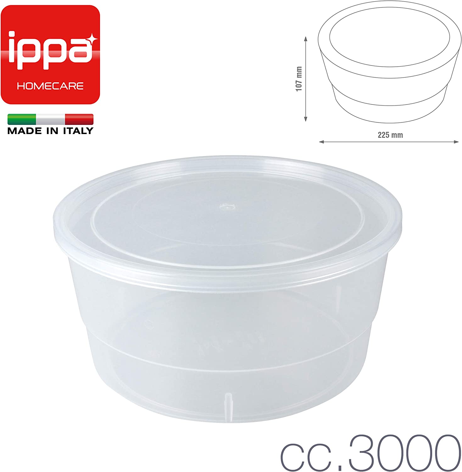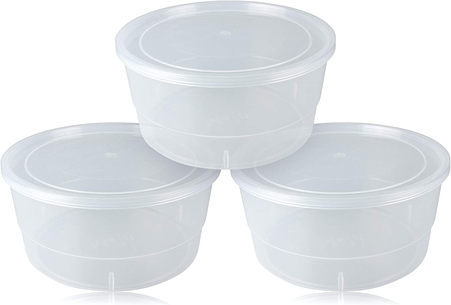 - 3 récipients ronds avec couvercles. Empilable peu encombrant.